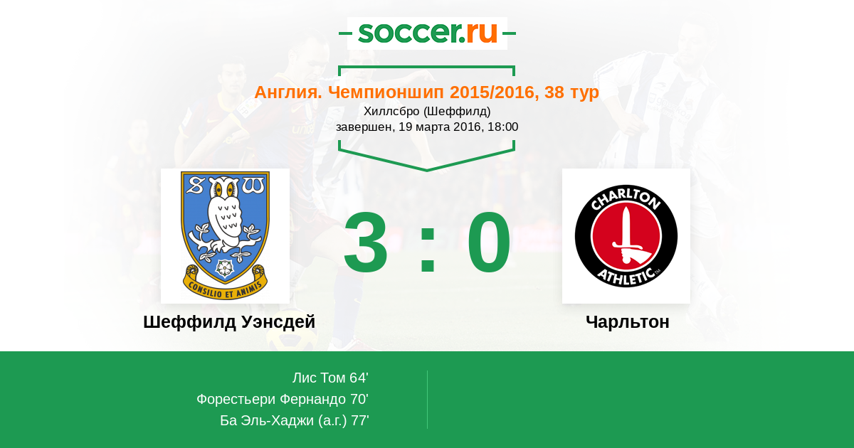 Протокол матча Шеффилд Уэнсдей против Чарльтон