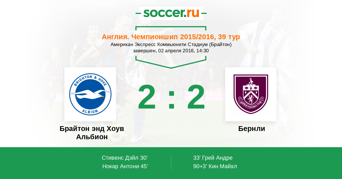 Протокол матча Брайтон энд Хоув Альбион против Бернли
