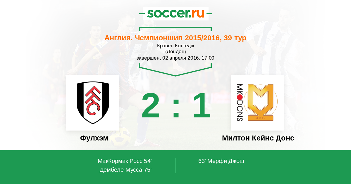 Протокол матча Фулхэм против Милтон Кейнс Донс