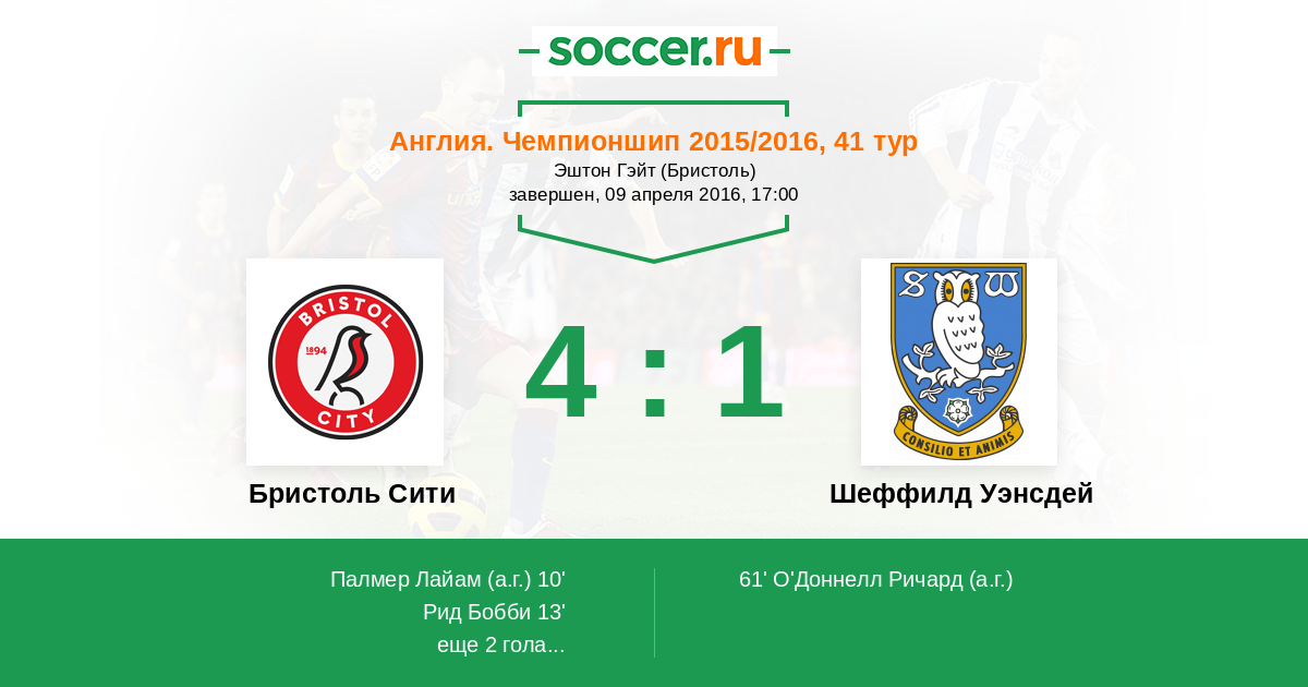 Протокол матча Бристоль Сити против Шеффилд Уэнсдей