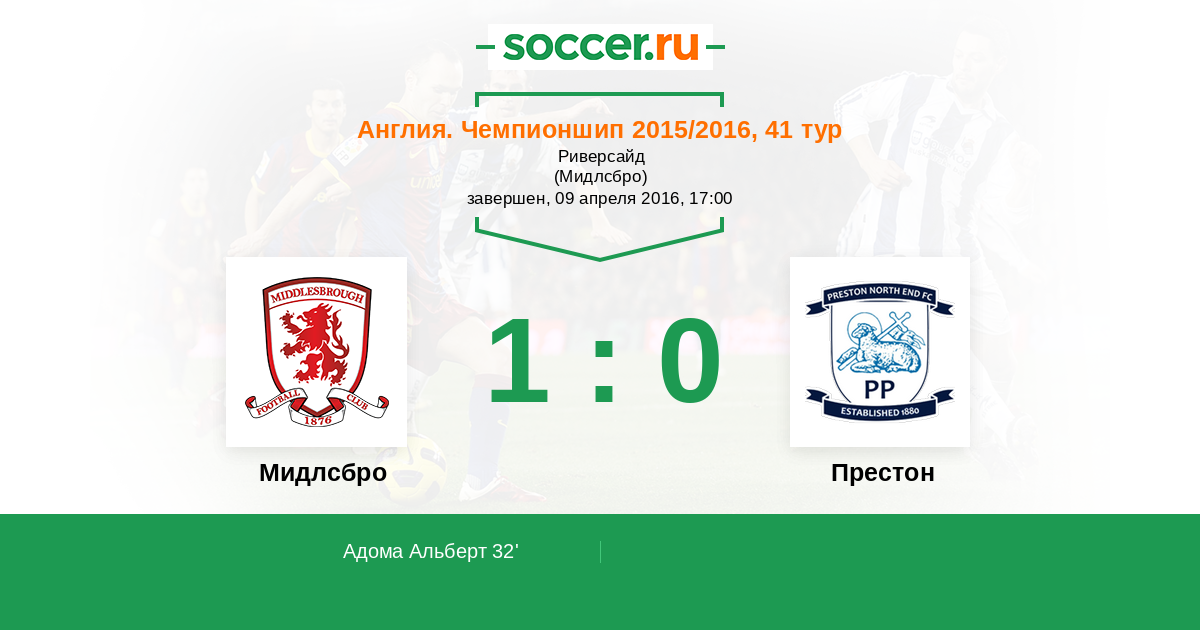 Протокол матча Мидлсбро против Престон