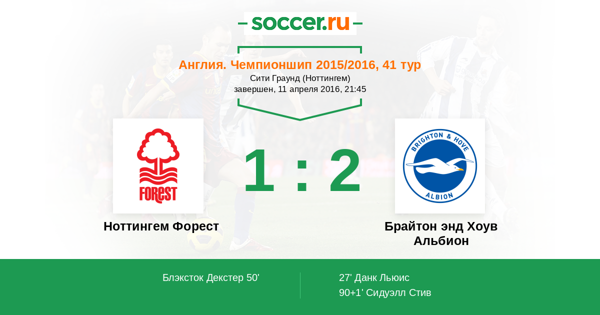 Протокол матча Ноттингем Форест против Брайтон энд Хоув Альбион