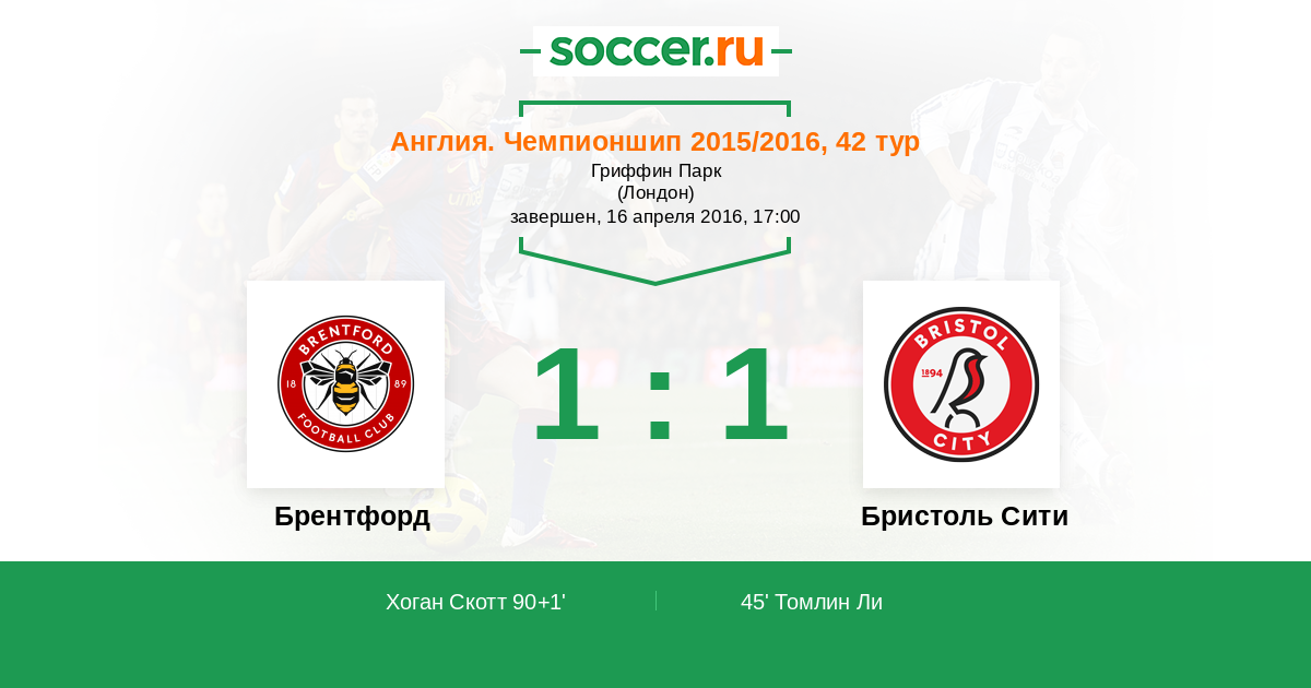 Протокол матча Брентфорд против Бристоль Сити
