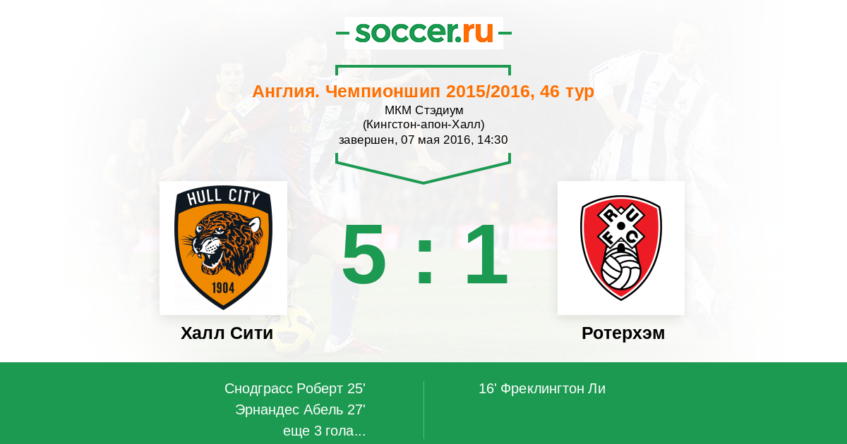 16' (0:1) Фреклингтон Ли (8) (Смоллвуд Ричард (33))