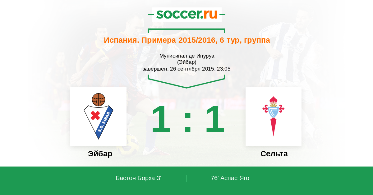Протокол матча Эйбар против Сельта