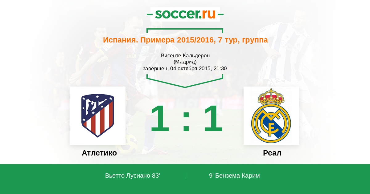 Протокол матча Атлетико против Реал