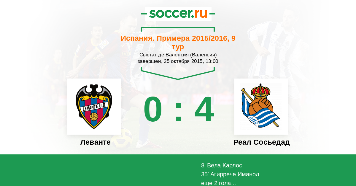 Протокол матча Леванте против Реал Сосьедад