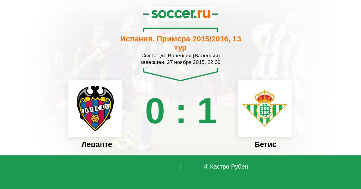 Протокол матча Леванте против Бетис