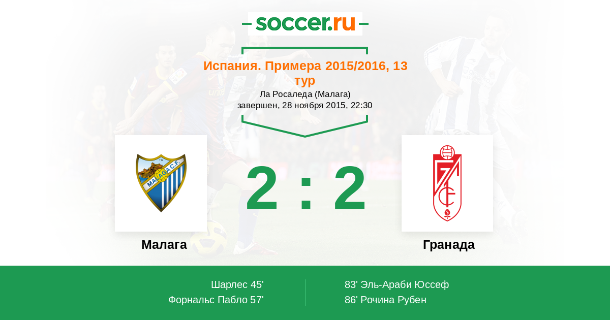 Протокол матча Малага против Гранада