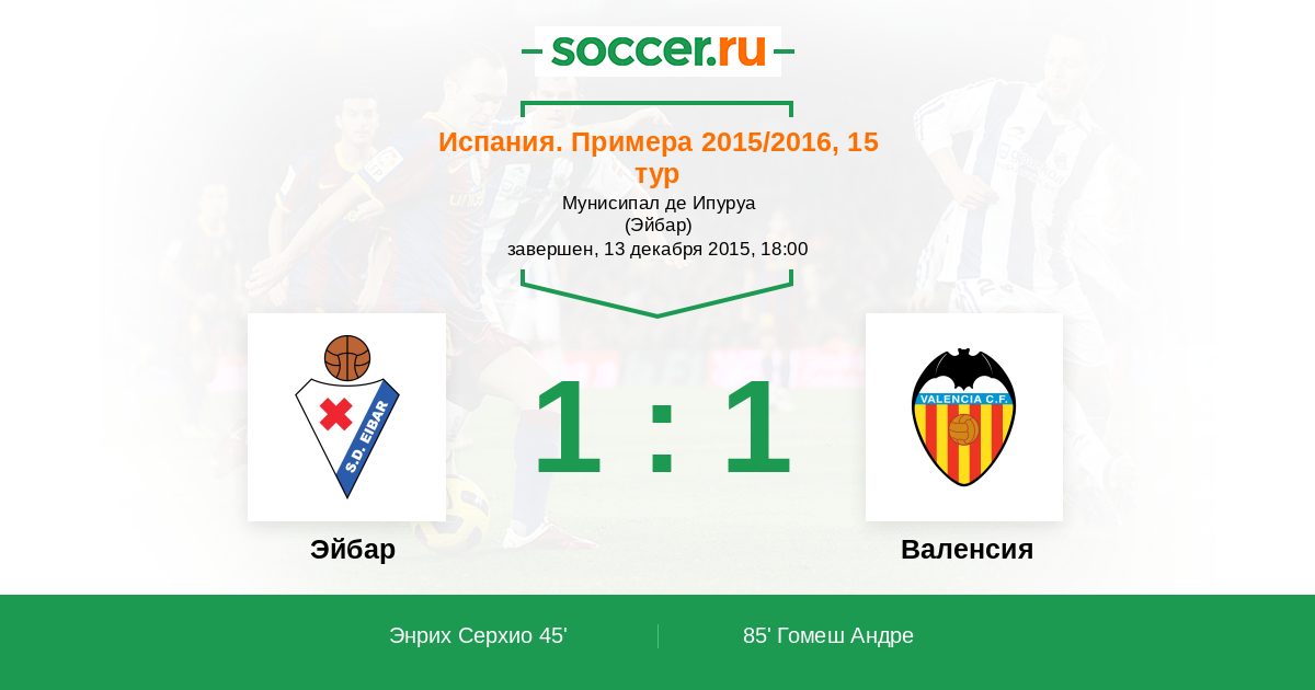Протокол матча Эйбар против Валенсия