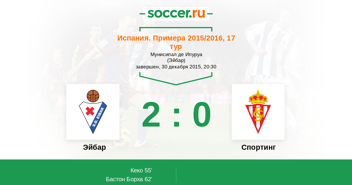 62' (2:0) Бастон Борха (18) (Берхон Сауль (21))