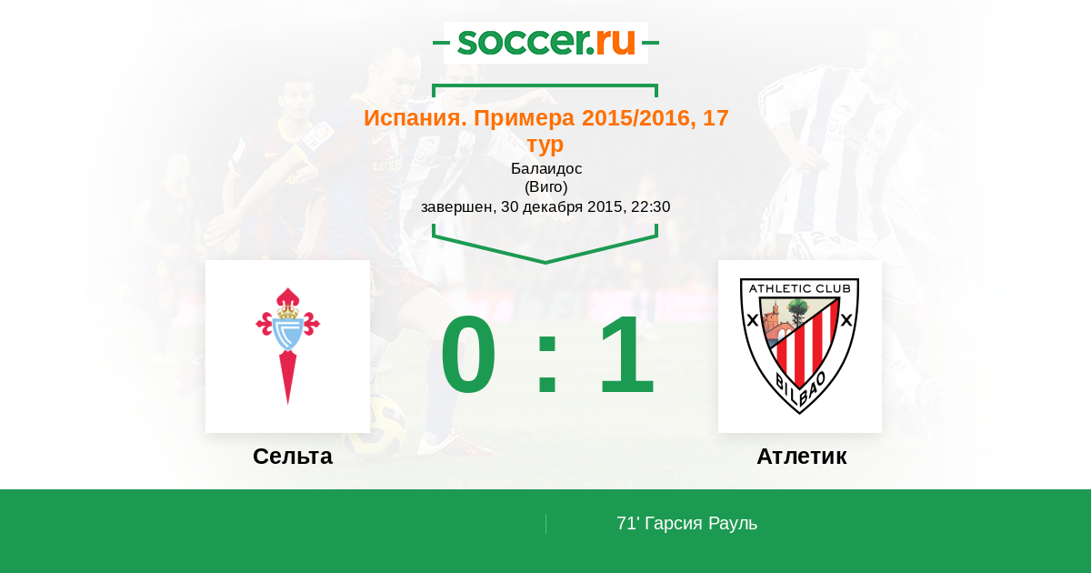 Протокол матча Сельта против Атлетик