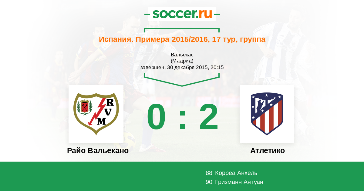Протокол матча Райо Вальекано против Атлетико