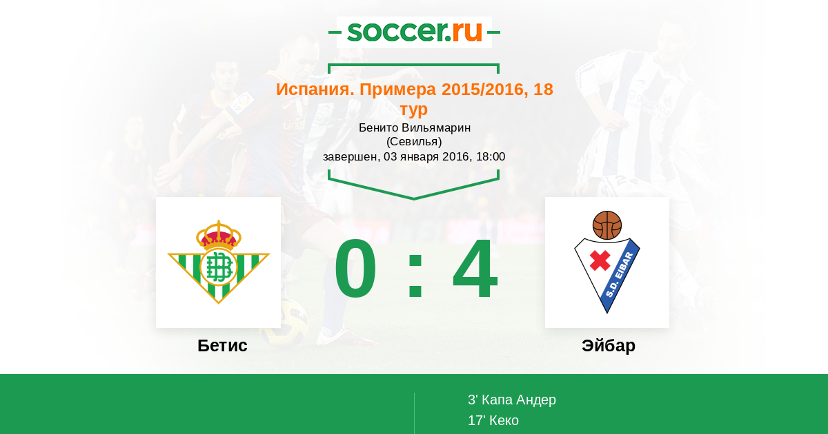 Протокол матча Бетис против Эйбар