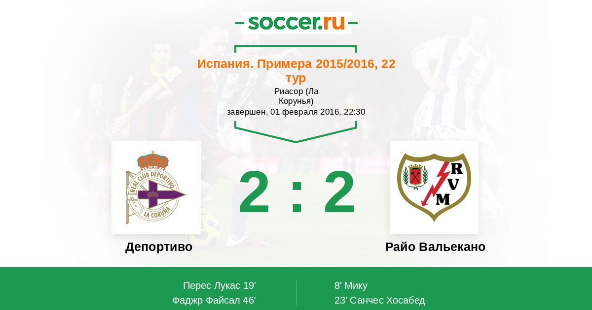 Протокол матча Депортиво против Райо Вальекано