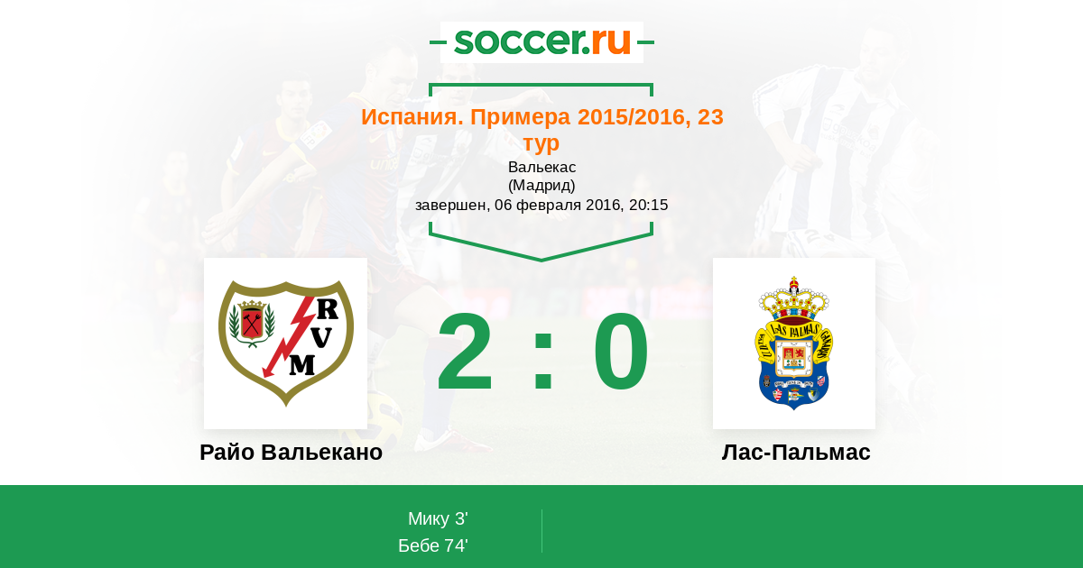 Протокол матча Райо Вальекано против Лас-Пальмас