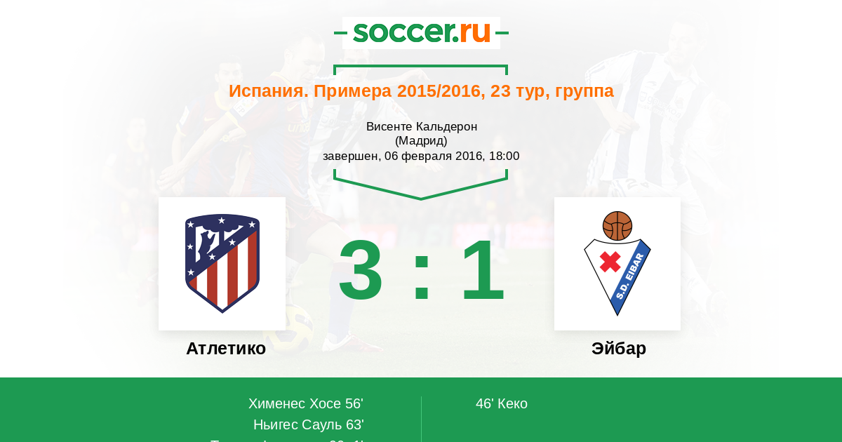 Протокол матча Атлетико против Эйбар