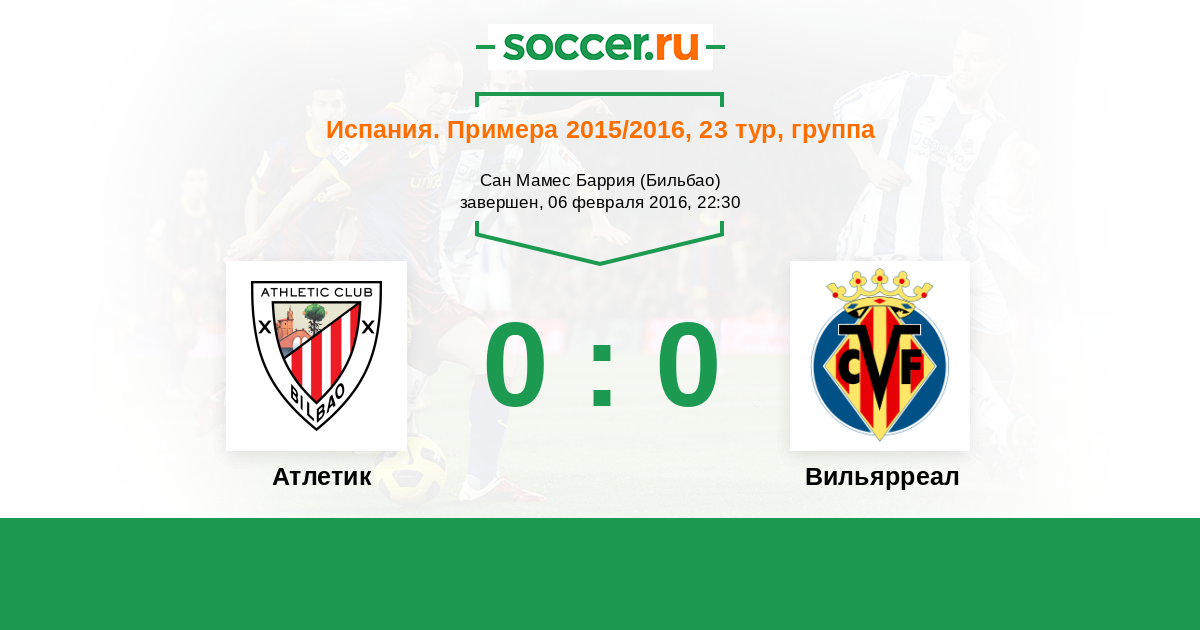 Протокол матча Атлетик против Вильярреал
