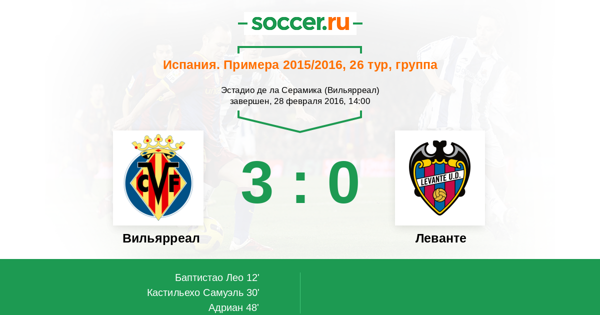 Протокол матча Вильярреал против Леванте