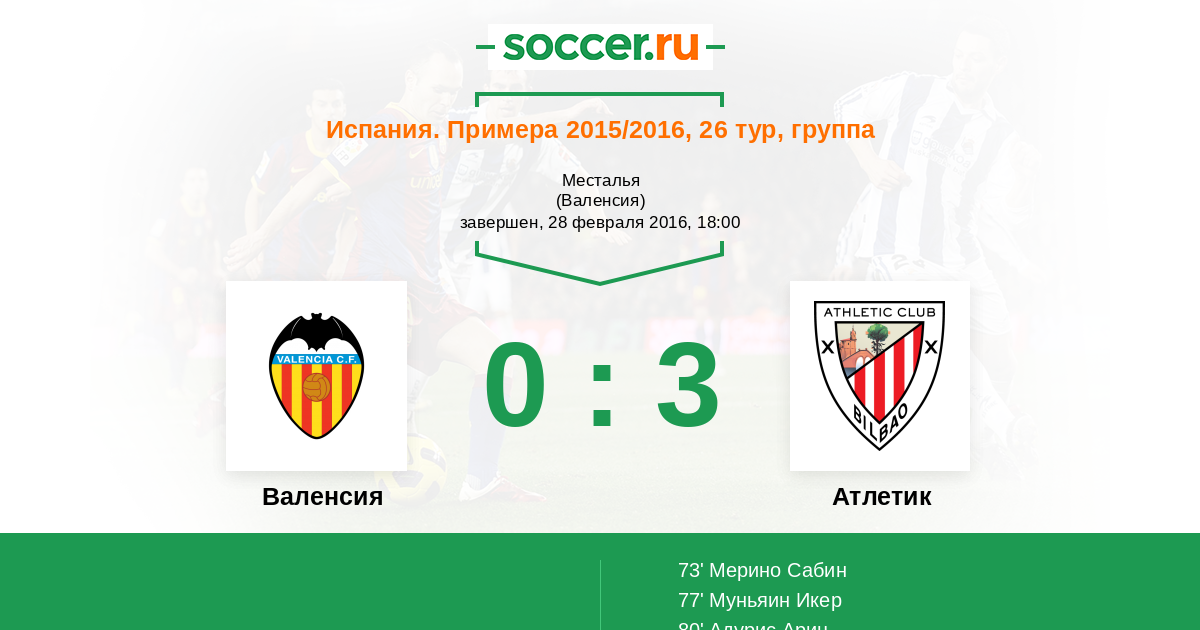 Протокол матча Валенсия против Атлетик