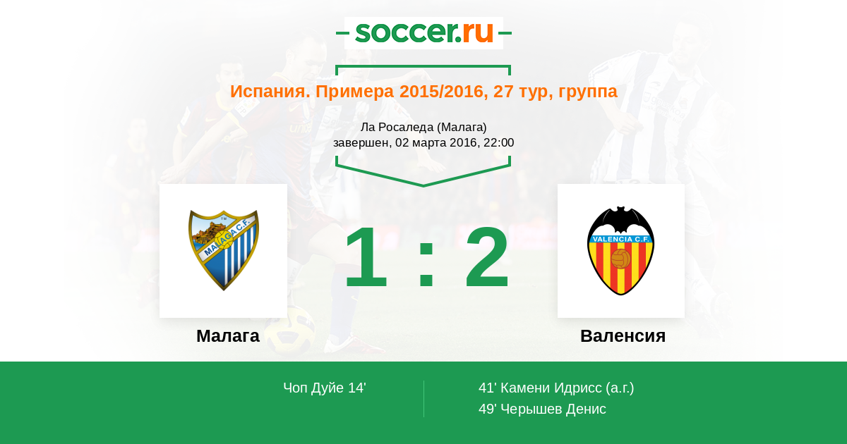 Протокол матча Малага против Валенсия