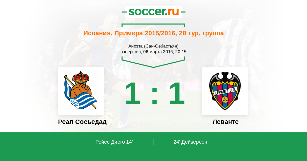 Протокол матча Реал Сосьедад против Леванте