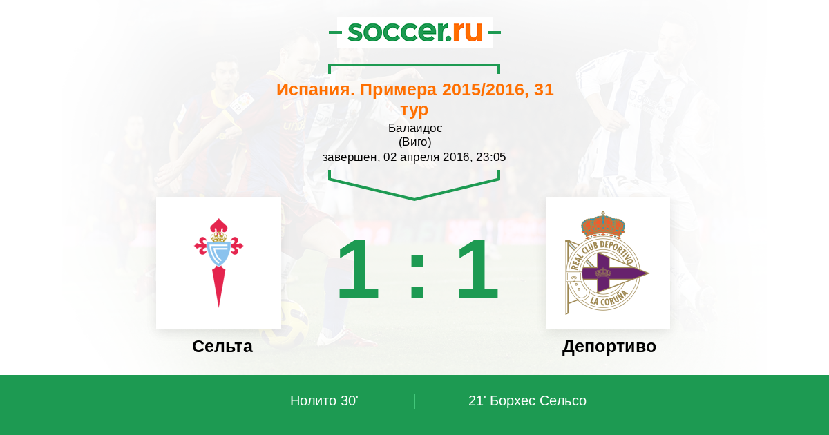 21' (0:1) Борхес Сельсо (22) (Альберто Луис (21))