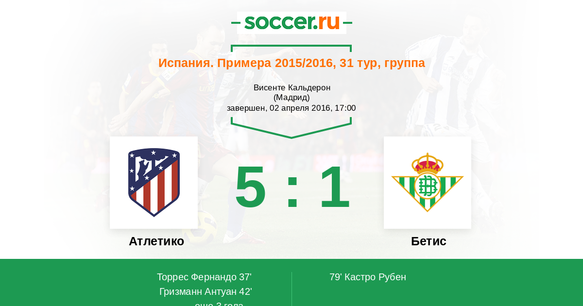 Протокол матча Атлетико против Бетис