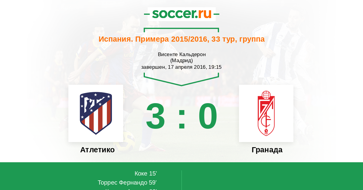 Протокол матча Атлетико против Гранада