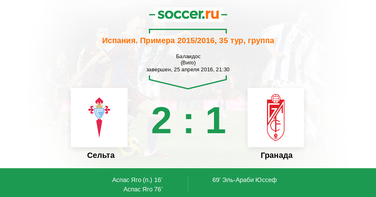 Протокол матча Сельта против Гранада