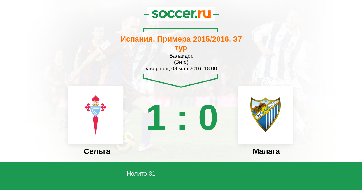 Протокол матча Сельта против Малага