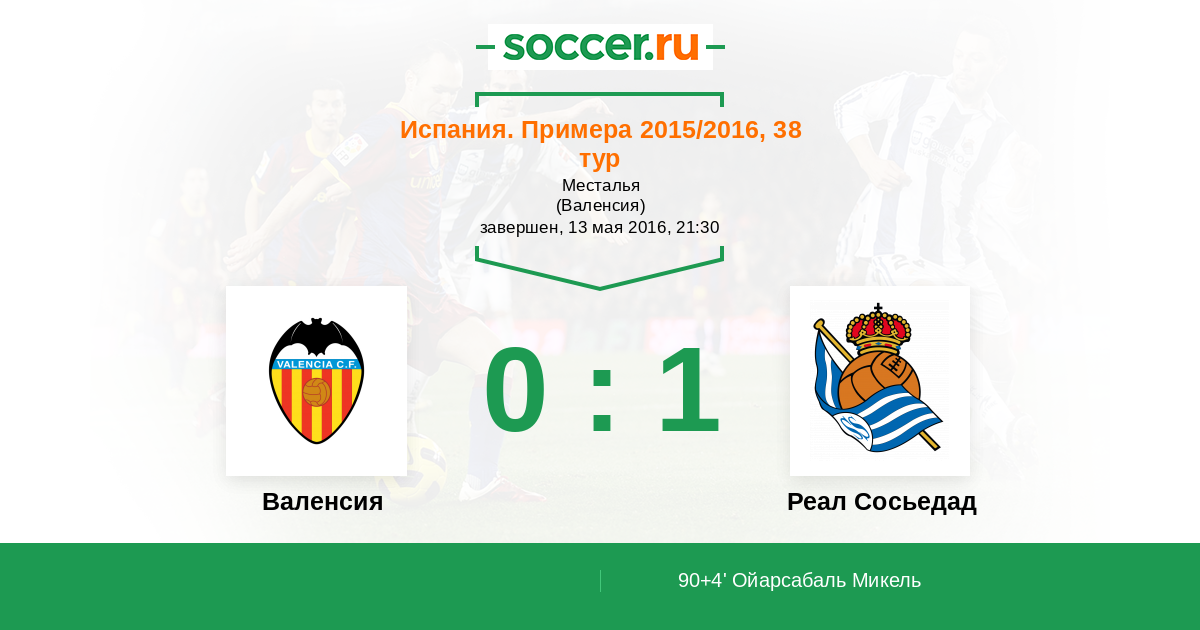 Протокол матча Валенсия против Реал Сосьедад