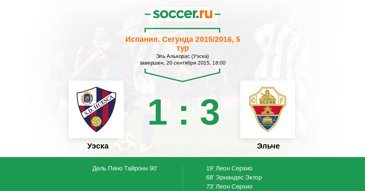 Протокол матча Уэска против Эльче