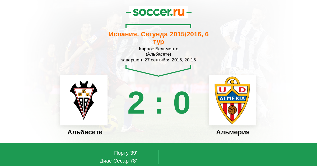 Протокол матча Альбасете против Альмерия