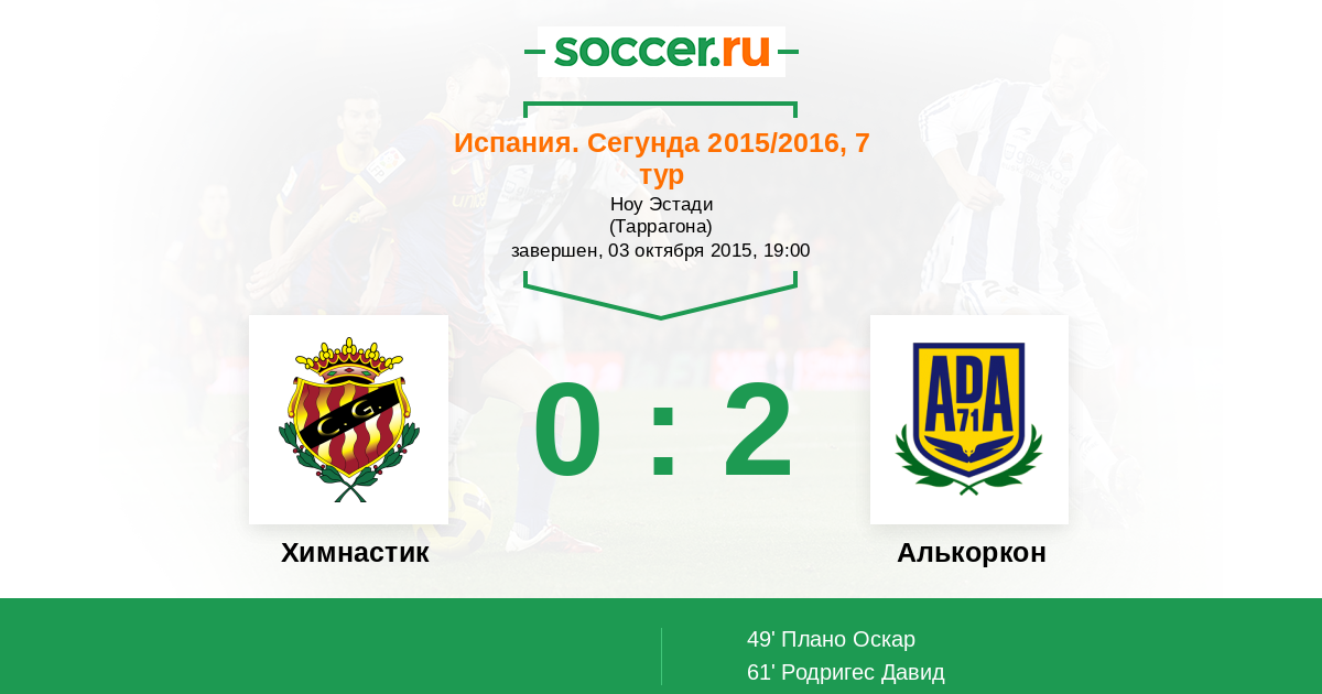 Протокол матча Химнастик против Алькоркон