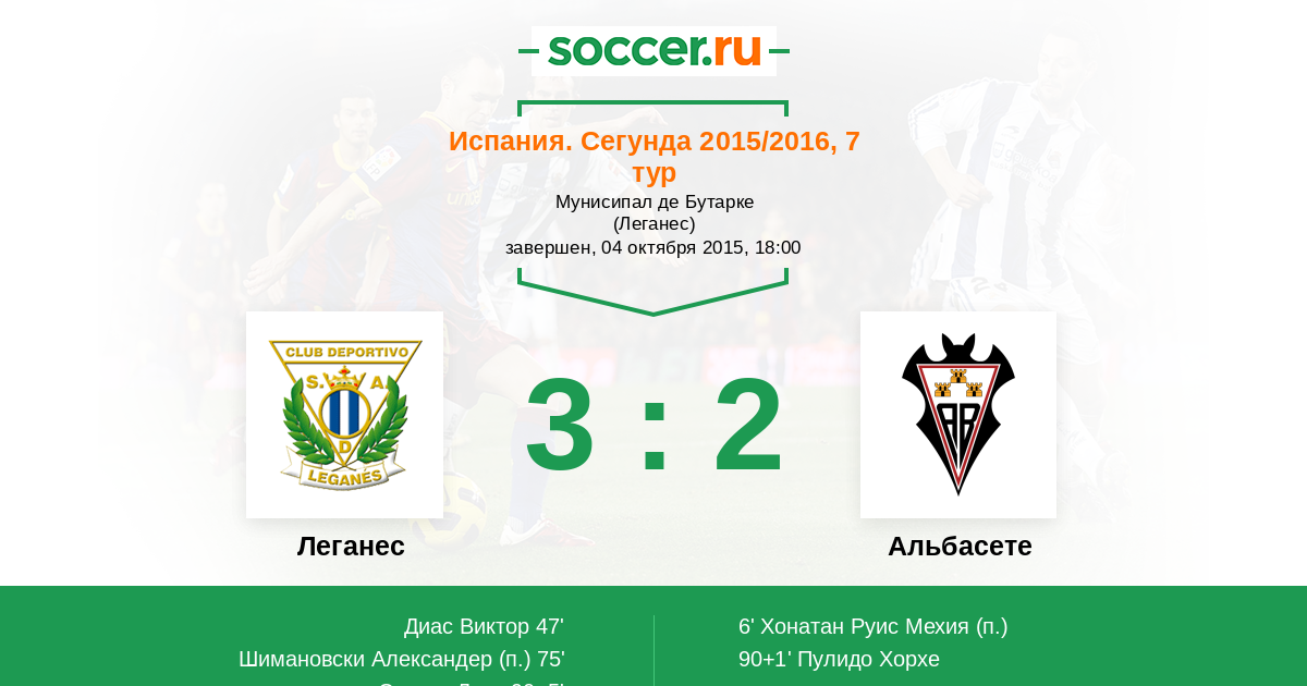 Протокол матча Леганес против Альбасете