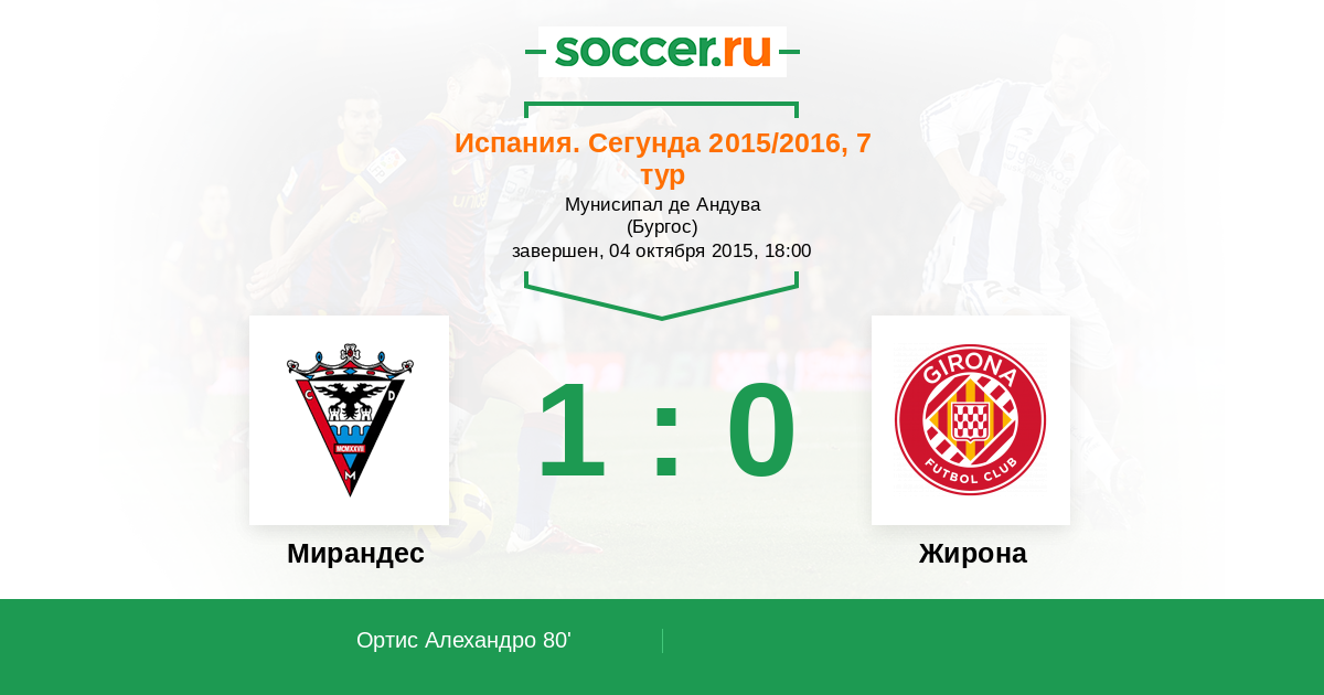 Протокол матча Мирандес против Жирона