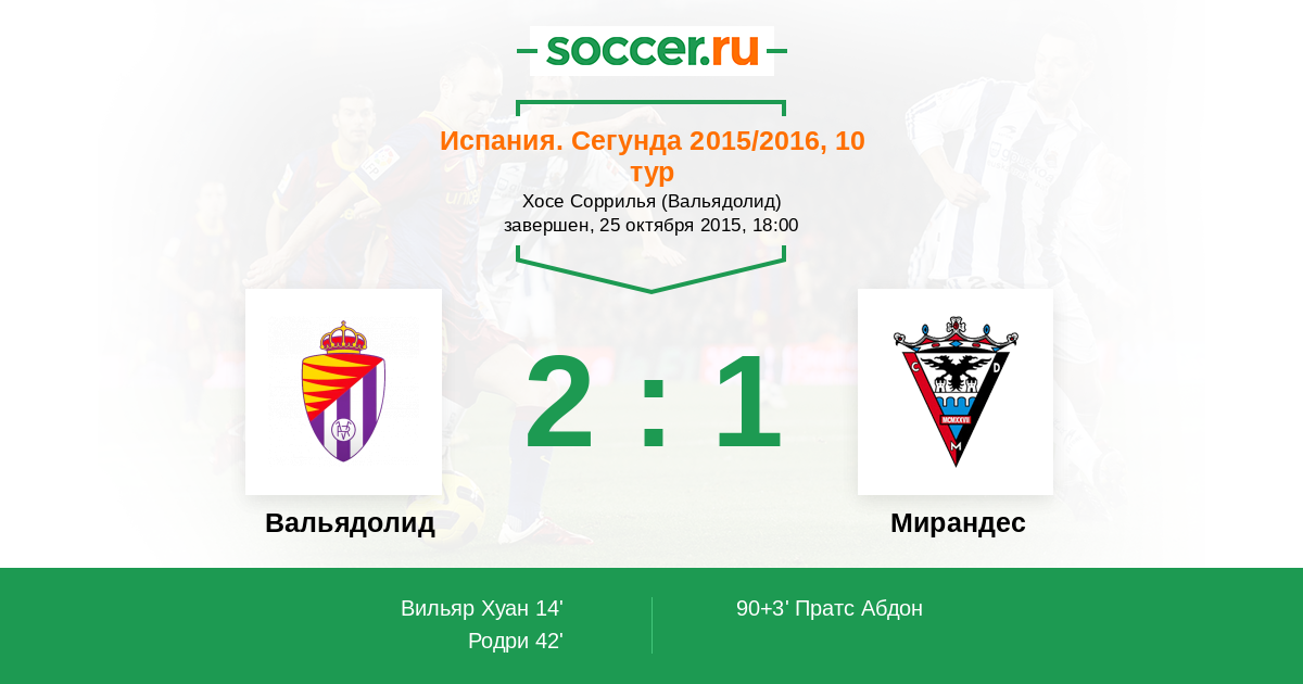 Протокол матча Вальядолид против Мирандес