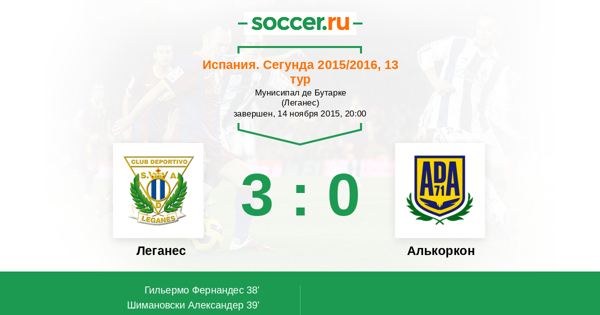 Протокол матча Леганес против Алькоркон