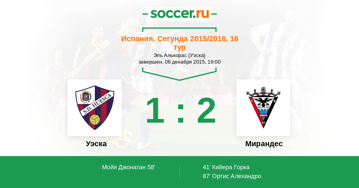 Протокол матча Уэска против Мирандес