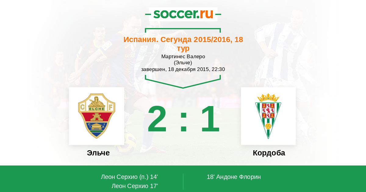 Протокол матча Эльче против Кордоба