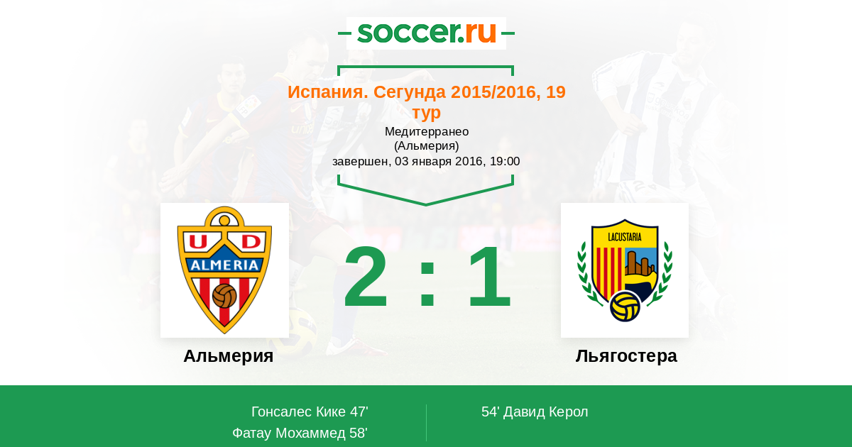 Протокол матча Альмерия против Льягостера