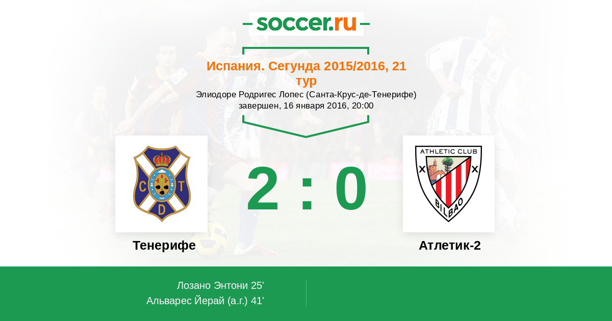 Протокол матча Тенерифе против Атлетик-2