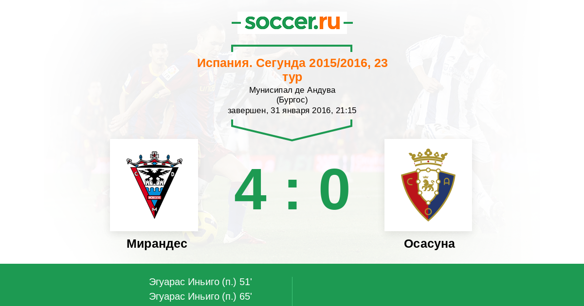 Протокол матча Мирандес против Осасуна