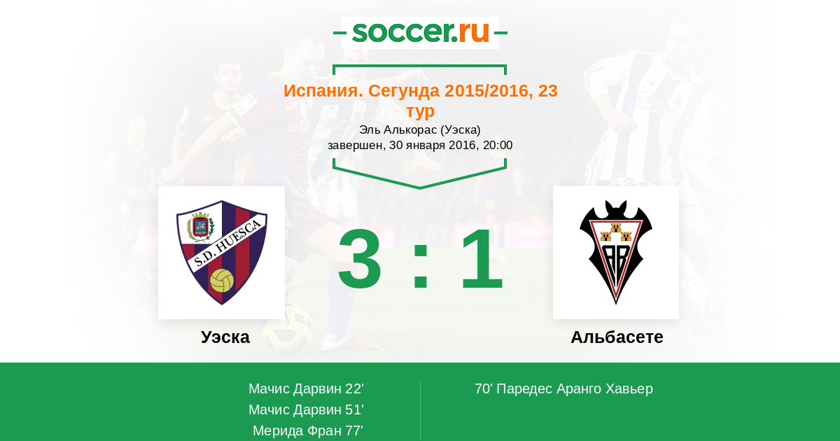 Протокол матча Уэска против Альбасете