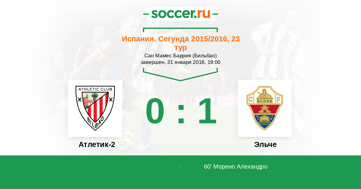 Протокол матча Атлетик-2 против Эльче