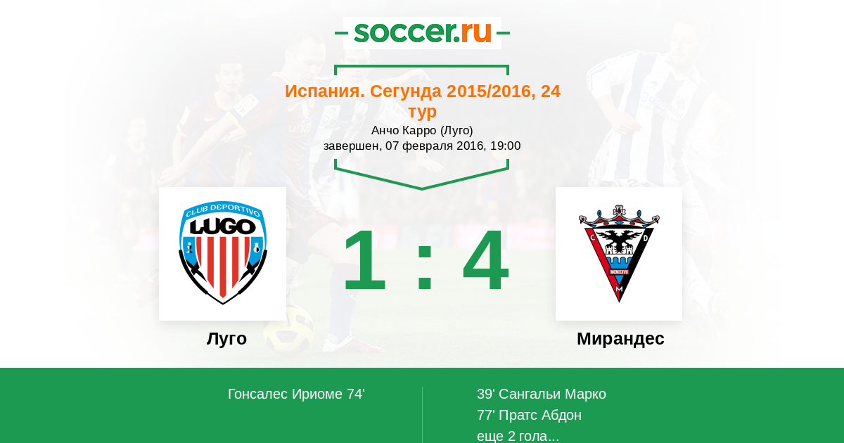 Протокол матча Луго против Мирандес