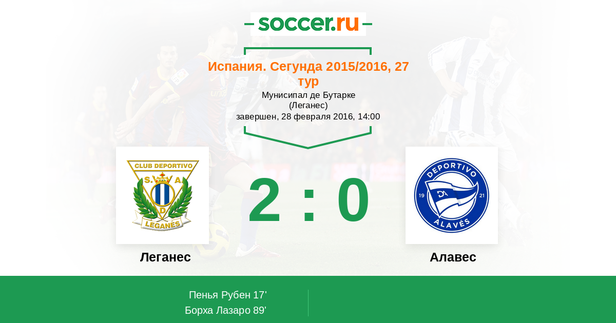 Протокол матча Леганес против Алавес
