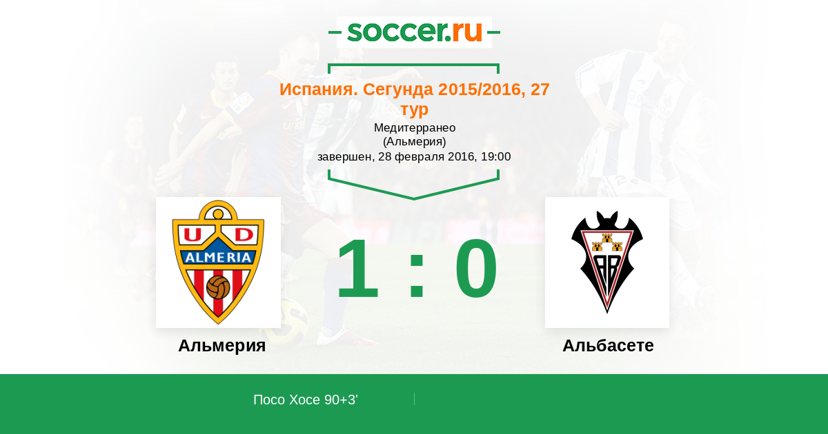 Протокол матча Альмерия против Альбасете