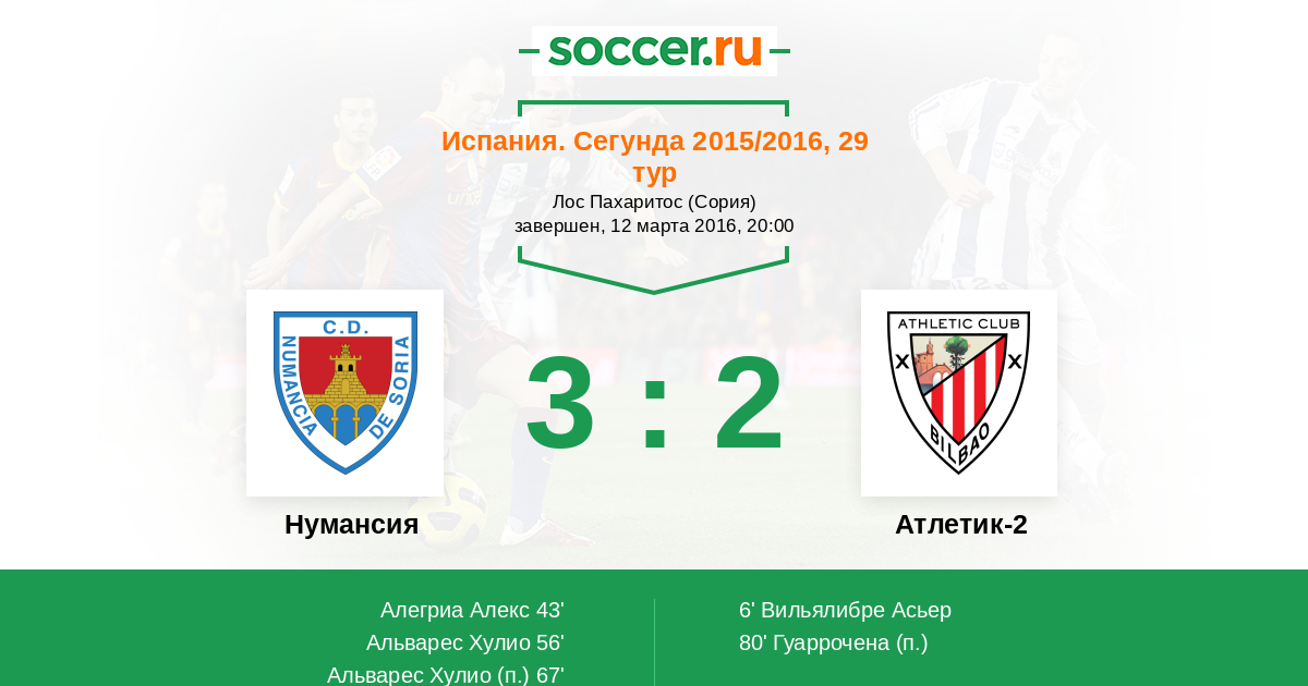 Протокол матча Нумансия против Атлетик-2
